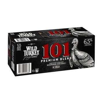 wild turkey 101 & cola 375ml cans 10pk's