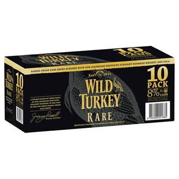 wild turkey rare breed & cola 375ml cans 10pk's